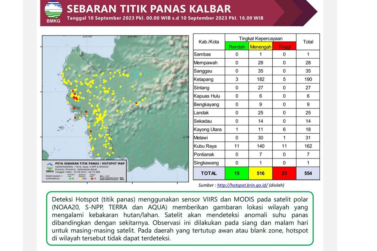 BMKG menggunakan empat satelit utama, yaitu AQUA, NOAA20, SNPP, dan TERRA, untuk memantau titik panas di seluruh Indonesia. Setiap satelit memiliki tingkat kepercayaan yang berbeda, mulai dari rendah hingga tinggi, yang menunjukkan seberapa valid lokasi titik panas tersebut. Di Kalimantan Barat, terdapat 229 titik panas yang terdeteksi, dengan sebagian besar berada di area lahan gambut yang rentan terbakar.